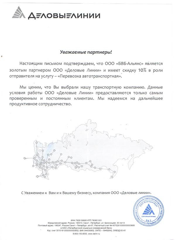 Мы стали Золотым партнером ООО «Деловые линии». Теперь заказывая металлопрокат у нас, вы получаете 10% скидку за доставку!