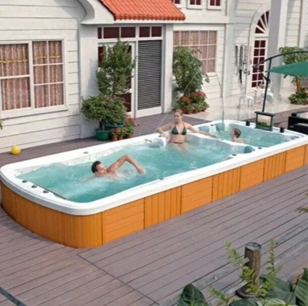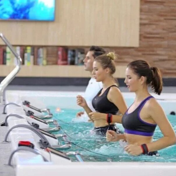 — Плавательные бассейны с противотоком, беговыми дорожками и акватренажёрами