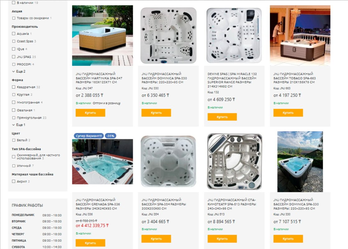 — Бренды: Jacuzzi, JNJ Spas, Passion Spas, Coast Spas, Aquavia, Procopi