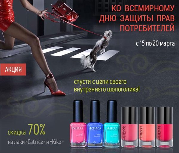 Иногда просто необходимо дать себе волю и забыть обо всех ограничениях! Идеальное время для разгула шопоголизма — Всемирный день потребителя. Скидка 70% на лаки итальянских и германских производителей — на старт, внимание, марш!