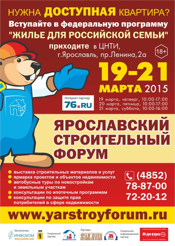 Приглашаем вас посетить стенд компании в рамках специализированной выставки: ЯРОСЛАВСКИЙ СТРОИТЕЛЬНЫЙ ФОРУМ, которая состоится в период с 19 по 21 марта 2015 года по адресу: г. Ярославль, ЦНТИ пр-т Ленина, д. 2а