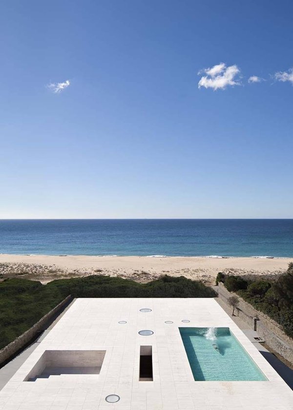 Часть двухуровневого дома утоплена в холме, где скрыты жилые помещения. Строгий античный дух этого места отлично сочетается со строгим минимализмом. Соединив их в этом месте, на скалистом берегу моря, архитектору удалось создать подчеркнуто безупречное творение. К слову, вилла называется Дом бесконечности