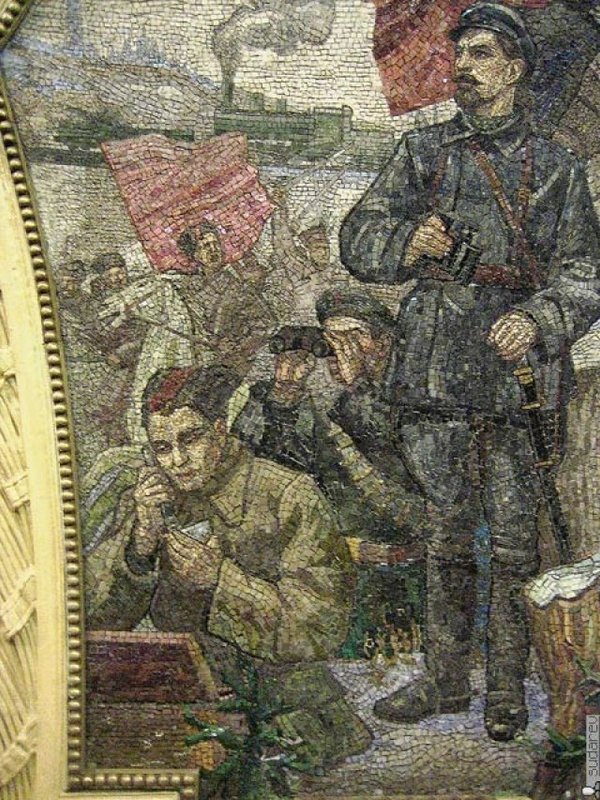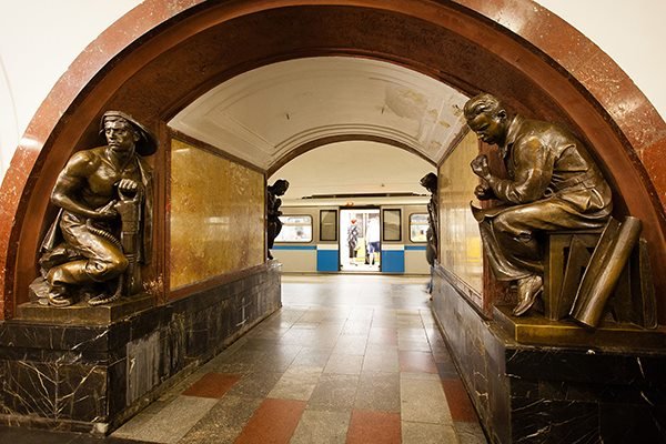 Чтобы вместить крупные фигуры в ограниченное пространство станции, пришлось придать им несколько скованные позы. Над этим в свою очередь потешалась вся столица: почему весь советский народ либо сидит, либо стоит на коленях. Однако Сталину изваяния понравились, потому никто не стал ничего менять.