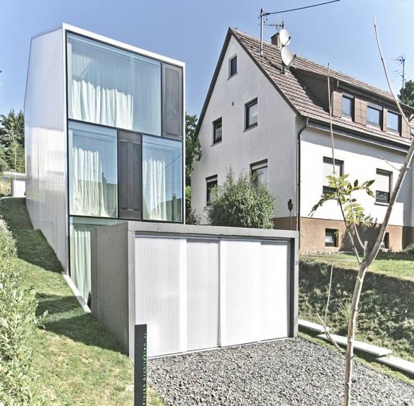В немецком городе Эсслинген-на-Неккаре появился необычный домик. В этом очень узком месте с большим перепадом высот некогда находился обычный уличный проезд.