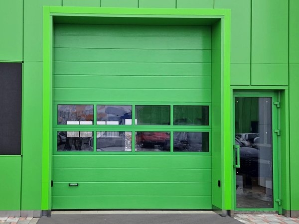 Добавь ярких красок с DoorHan Промышленные секционные ворота DoorHan ISD01 с панорамными панелями, дизайн «широкая центральная полоса». Хотите такие же? Звоните нам — поможем с выбором и оформлением заказа