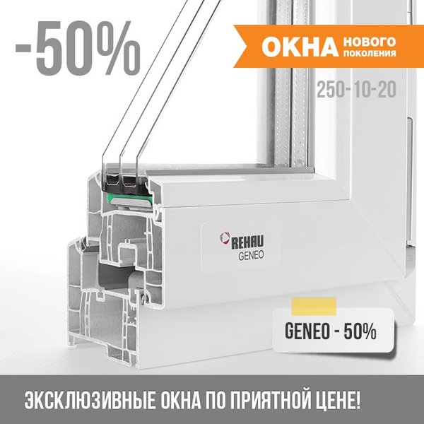 До 24 декабря специальная скидка на окна Geneo — 50%! Только до конца года стать обладателем эксклюзивных окон может буквально каждый наш клиент. Двустворчатое, трехстворчатое или балконный блок — никаких ограничений! Ультра теплые окна. Самое теплое окно на сегодняшний день, которое можно использовать в доме с пассивным отоплением, ведь приведенное сопротивление теплопередачи Rпр. равно 1,05! В данной системе вместо тяжелого и холодного металлического армирования использован материал RAUFIPRO, что позволило сделать конструкцию на 20% легче по… — Читать дальше
