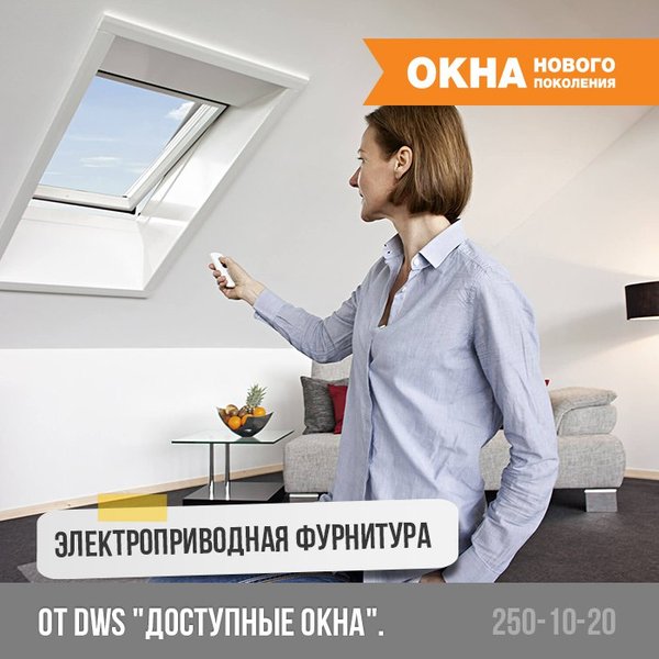Дистанционное открывание окон или электроприводная фурнитура. В DWS «Доступные окна» Вы можете заказать 2 варианта: 1. От кнопки — устанавливается в удобном для Вас месте на раме; 2. От дистанционного пульта — что облегчит пользование труднодоступных или недосягаемых местах. Чтобы узнать больше о данном предложении достаточно позвонить нам по телефону или на сайте