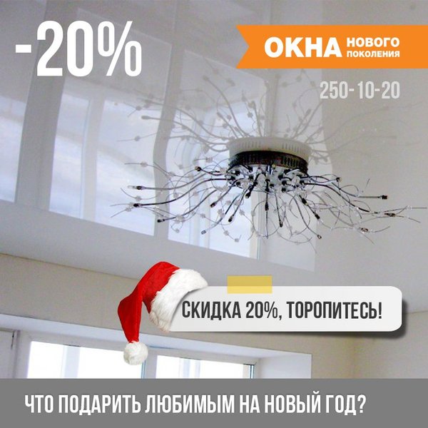 Вы хотите порадовать своих любимых, сделать им приятный подарок? Для этого вовсе не обязательно дарить шубы и драгоценности – достаточно лишь заказать натяжные потолки! Только самые качественные материалы, только самые оригинальные дизайнерские решения, и главное – быстрота установки. То есть, вы можете сделать сюрприз, пока он/она будет на работе или даже в магазине. А вариантов оформления доступно множество: С нами дарить радость легко! Мы работаем до 24 декабря — торопитесь! Звоните