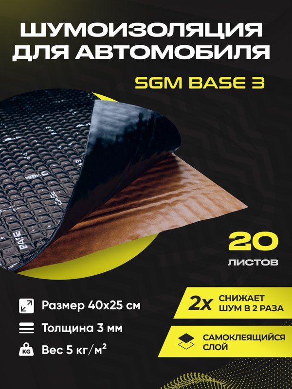 Данный материал — это уникальная система шумоизоляции для автомобиля, обладающая высокими показателями за небольшие деньги. Base также выступает гарантом защиты кузова от коррозии.