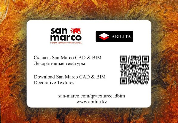 разные инструменты и технологии нанесения – творите! Экологичность. Предлагаемые декоративные покрытия производятся без вреда для окружающей среды. В составе материалов Сан Марко – лишь натуральные компоненты, не вызывающие аллергии. Практичность и функциональность. Простая процедура нанесения, хорошая адгезия, устойчивость и прочность, возможность маскировать неровности стен – неотъемлемые достоинства продукции завода Сан Марко. Профессиональные консультации по подбору материалов. Проведение бесплатных мастер классов. _____________________________________________________________ НАШИ АДРЕСА: г. Астана, ул. А. Янушкевича, 1 (район Гребного канала), _ _ _ _ _ _ _ _ _ _ _ _ _ _ _ _ _ _ _ _ _ _ _ _ _ _ _ _ _ _ _ г.Павлодар, ул.Исиналиева 58, DREAM HOUSE +7 (7812) 782—952, ______________________________________________________________