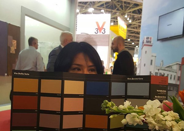 На выставке MosBuild 2017. На стенде своих коллег компании Верничи. От возможностей цвета и фактур красок завода San Marco (Италия) кружится голова.