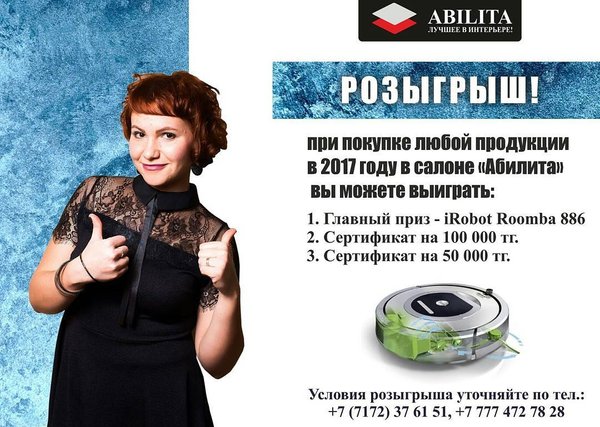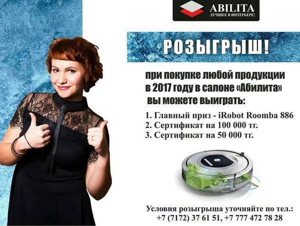 ДОРОГИЕ ДРУЗЬЯ! Вы еще можете принять участие в АКЦИИ в салоне «АБИЛИТА». __________________________________________________________ УСЛОВИЯ РОЗЫГРЫША: 1. При покупке любой продукции в 2017 году в салоне «Абилита» в городе Астана Вы имеете возможность стать участником розыгрыша 2. Победители будут выбраны путем лотереи 3. Результаты будут зафиксированы на видео при независимых участниках в кол-ве 10 человек и размещены на официальном сайте 4. Розыгрыш состоится 7 декабря 2017 года в салоне «Абилита» по адресу: г.Астана, ул. А. Янушкевича, 1, НП… — Читать дальше