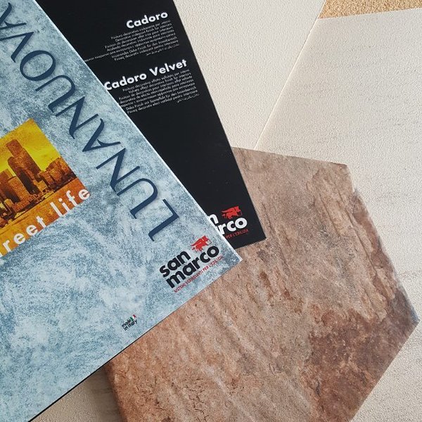 Подбор внутренней отделки для нашего Покупателя. В качестве ориентира служит плитка в форме шестиугольника. И как всегда правильный выбор-декоративные покрытия завода SAN MARCO (Италия)!
