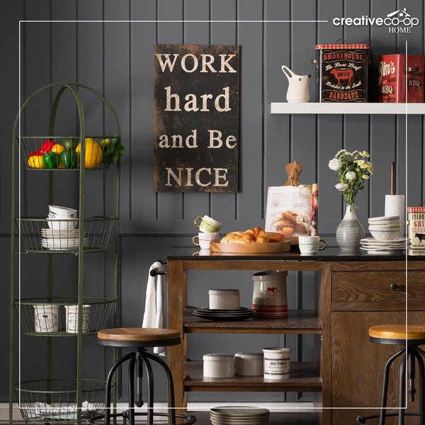 Work hard and Be nice! Рекомендуем: самый верный настрой! Такое напоминание как нельзя лучше для кухни — чтобы утро начиналось как надо! А для того, чтобы завтраки, обеды и ужины «бодрили» не меньше — аксессуары для кухни от Creative Co-Op Home: выбирайте!