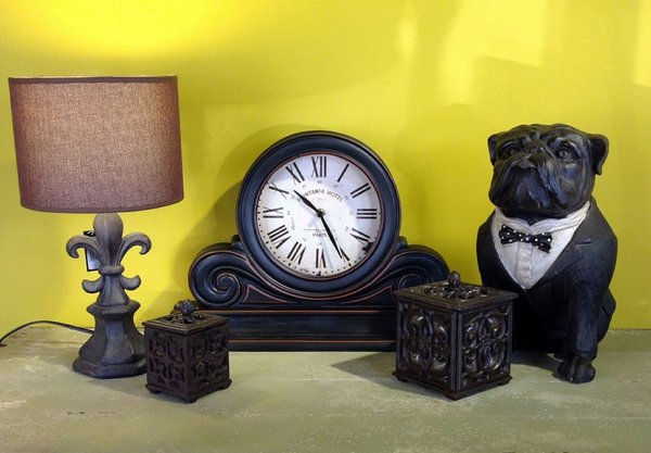 Лампа настольная «Fleur Dr Lis«- (20см.) — цена 3880р. Подсвечник (металл, стекло), 15,5 см. — цена со скидкой 30% — 1288р. Подсвечник (металл, стекло), 12 см. — цена со скидкой 30% — 924р. Каминные часы (массив), 48/12,4/30см. — цена 7460р. Статуэтка «Бульдог» — цена 4050р.