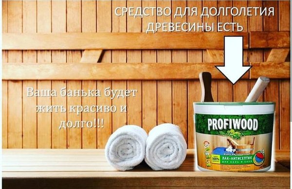 Лак-антисептик «Profiwood» для для долголетия бань и саун.