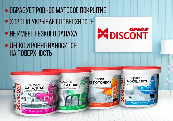 Продукты «Ореол Discont» предоставляют покупателям возможность приобрести современные и экологически безопасные водно-дисперсионные покрытия по доступной цене. Рецептура и сырьевые компоненты обеспечивают высокий уровень качества.