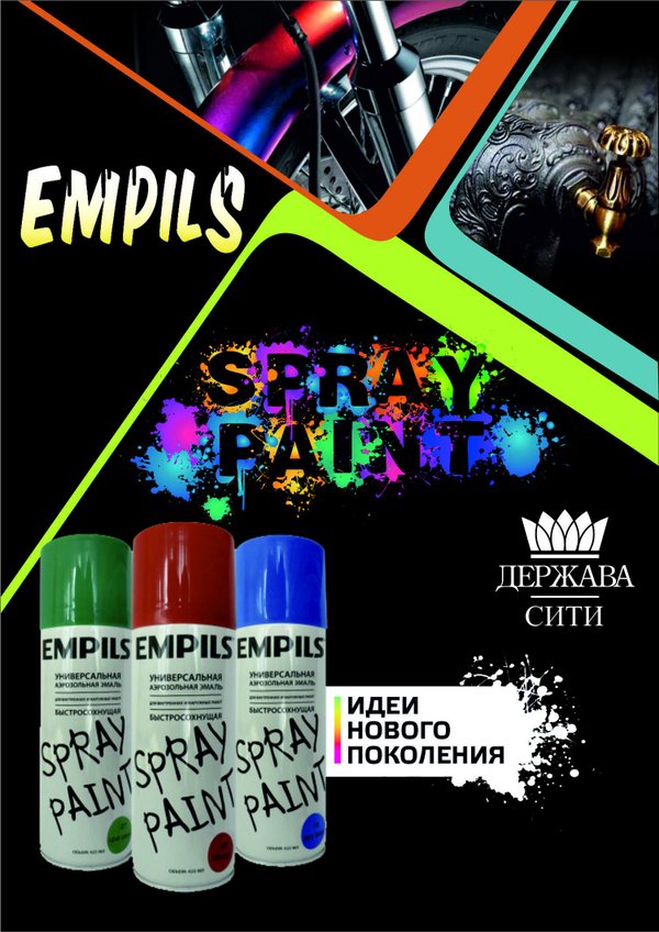 но выбрать краску: глянцевую или матовую; с перламутровым отливом; с флуоресцентным блеском с молотковым эффектом. Четкие геометрические узоры или плавные переходы абстрактных рисунков все это легко достигается при использовании красящих спреев. Простота и удобство использования аэрозольных лакокрасочных материалов помогают СОЗДАТЬ неповторимый дизайн помещения, СДЕЛАТЬ свой автомобиль неповторимым с помощью аэрографии или УКРАСИТЬ скучный фасад и забор с помощью граффити, ПОДАРИТЬ новую жизнь любимым старым вещам и СОЗДАТЬ уникальные поделки для украшения.