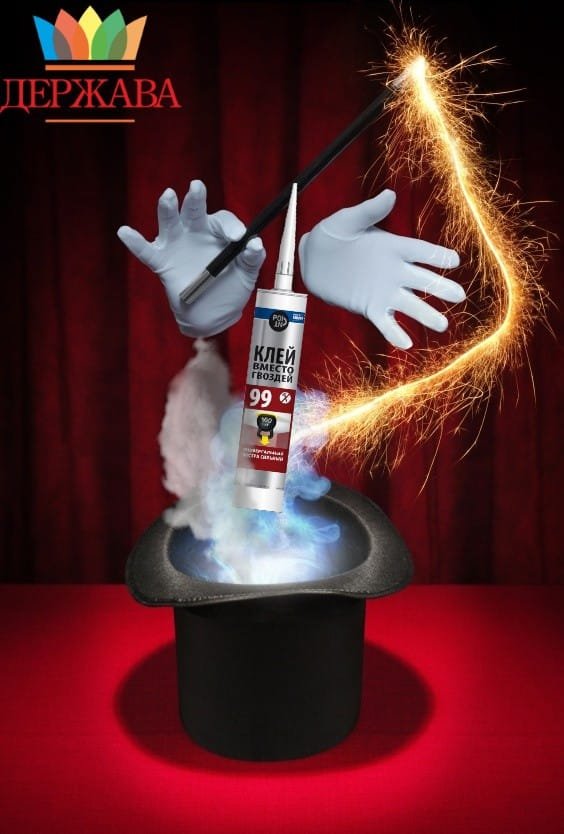 Представляем клей вместо гвоздей 98 POINT: • Клеит большинство строительных материалов: керамику, гипсокартон, фанеру, металл, пластик, ОСБ плиту, стекло, древесину, кирпич, бетон, штукатурку, камень; • Удобно пользоваться в быту: не нужно сверлить, нанесли клей, прижали и всё; • После 48 часов клей уже выдерживает особо большие нагрузки. Очень удобно клеить плинтус, наличники дверей. Высокая сила схватывания – отлично прилегает ко всем неровностям стены. Походит для всех сезонов, температура применения от +30˚С до -20˚С.