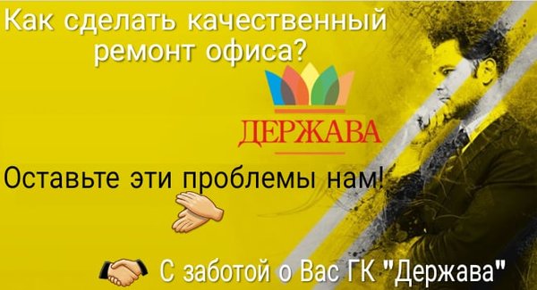 о ремонте офисов Встречают по одежке. Данное утверждение относится не только к людям, но и к офисным помещениям. Офис — лицо компании. Поэтому очень важно, чтобы он всегда был отремонтирован, выглядел стильно дорого и современно. Только в таком офисе клиенты будут чувствовать себя надежно и безопасно, а так же смогут доверять Вам. Обращайтесь в Группа Компаний Держава, чтобы произвести профессиональный ремонт офисов с качественным строительным товаром. #Держава — мы не подведем!