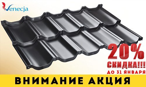 Внимание! Акция! Приобретая модульную металлочерепицу «Venecja» в компании «Das erste Haus» (Первый Дом) в период до 31 января 2018 года, Вы получаете 20% скидку!