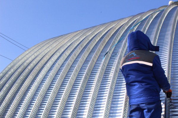 Экономичность арочного бескаркасного ангара По сравнению с каркасными сооружениями стоимость возведения арочного ангара бескаркасного типа оказывается ниже в 1,5—2 раза. Этого удается достичь благодаря простоте самонесущей конструкции арочных панелей, эффективному использованию расходных материалов, малому весу элементов бескаркасной конструкции, а значит и меньшим затратам на фундамент. Отсутствие затрат на несущие металлоконструкции и использование тяжелой техники так же существенно снижает стоимость возведения.