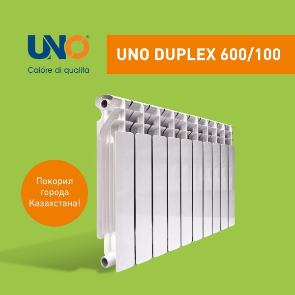 Биметаллический радиатор UNO CENTO – хит продаж в Казахстане! Биметаллические радиаторы UNO прочные, с длительным сроком службы. Стальная начинка батареи выдерживает частые перепады давления в трубах и стойкая к коррозии. В заводской упаковке поставляются 10 секционные радиаторы, высотой 200, 350 и 500 мм. Приобрести биметаллические радиаторы UNO CENTO вы можете у наших дилеров. Список найдете в разделе «Магазины» на нашем сайте или по ссылке