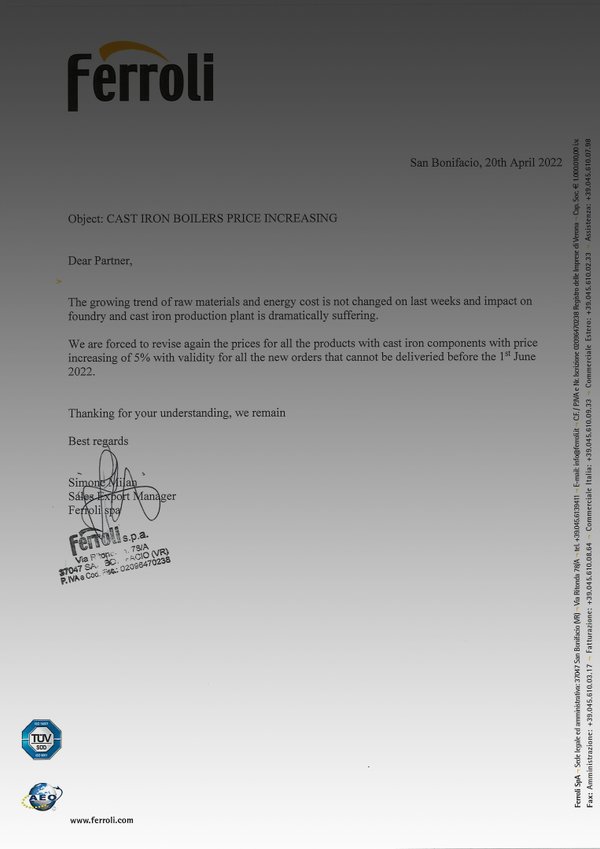 Дорогие клиенты, Мы рады поделиться с вами отличной новостью! К концу отопительного сезона компания Ferrolion запускает акцию для наших клиентов, кто ощутил неудобства от эксплуатации старых и неэффективных котлов этой зимой! Радуйтесь надежной работой и выгодой от эксплуатации Конденсационного газового котла Ferroli Engergy Top мощностью 80 и 125 кВт! Подробнее: