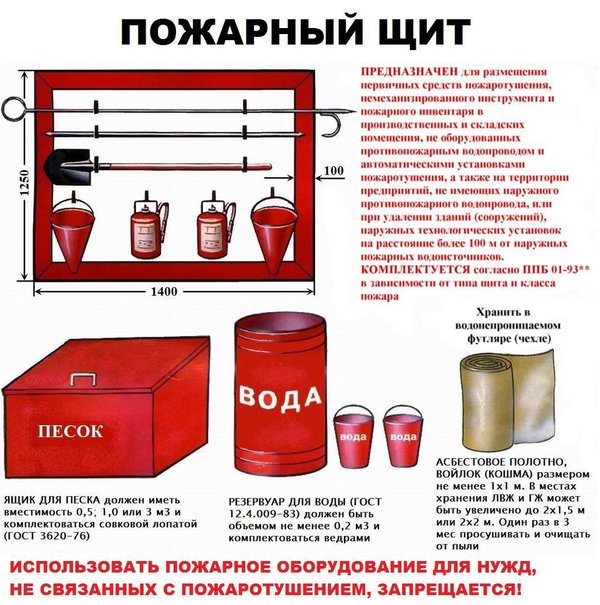 Комплектация пожарного щита