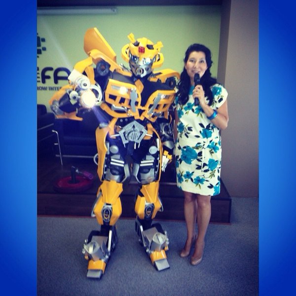 Promouters Kz (01.07.2014): Сегодня наш трансформер #bamblebee был робо-гостем в пресс-конференции, которая состоялась на #thefarm, посвященная мероприятиям приуроченным ко дню столицы. Все были просто восторге от него