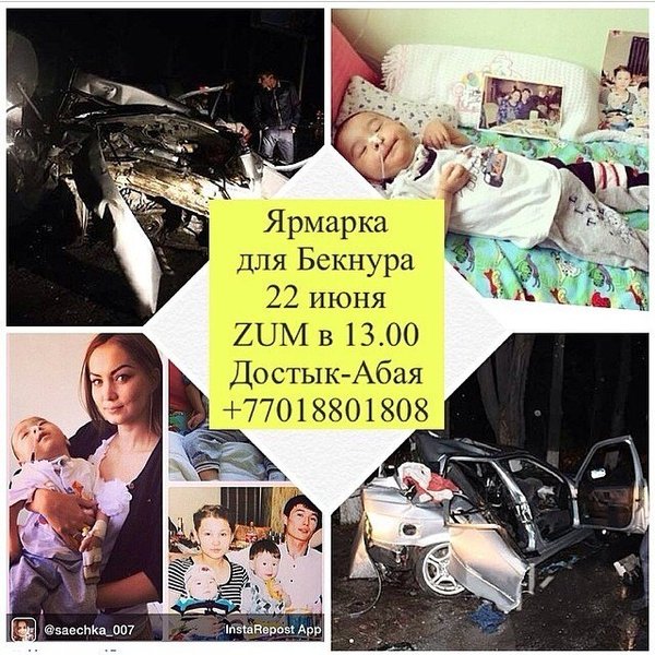 Дорогие ДРУЗЬЯ!Поможем Бекнуру вместе!!! В октябре 2013 г. произошла ужасная автокатастрофа, в результате которой Бекнур потерял папу, маму и старшего брата, которому было всего 2 года. А сам Бекнурчик получил тяжелую краниоспинальную травму (травматический разрыв спинного мозга). У маленького мальчика осталась лишь одна надежда в лице бабушки и нас, дорогие Друзья! На лечение требуется 200 000$. Мы понимаем, что это большая сумма, но все же не останемся равнодушными к Бекнурчику!!! 22 июня в 13:00 состоится благотворительная ярмарка для Бекнура… — Читать дальше