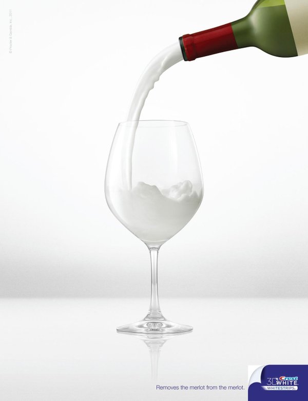 Реклама отбеливающей зубной пасты «Crest»: «Удаляет мерло из мерло».