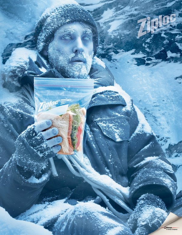 Спорная реклама с мертвецом. Не считаете? Пакеты для заморозки «Ziploc» сохранят продукты свежими даже в самых холодных условиях.