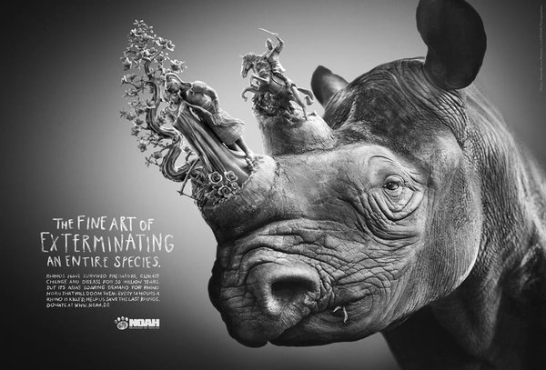 Социальная реклама в защиту вымирающих животных. Носороги пережили хищников, изменения климата и болезни в течение 50 миллионов лет. Но растущий спрос Азии на рог носорога обрекает их на исчезновение: каждые 14 часов носорога убивают. Помогите нам сохранить последних носорогов.