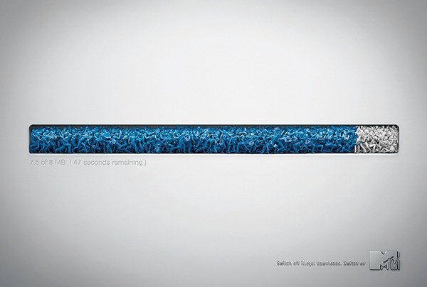 Реклама «MTV Europe»: «Выключите незаконную загрузку. Включите MTV». Реклама показывает, что фанаты наносят вред своим музыкальным героям, когда крадут их музыку.
