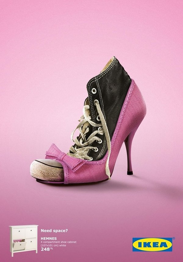 Яркая реклама «IKEA» подчеркивает недостаток места в шкафу для продажи своих компактных решений.
