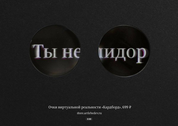Студия Артемия Лебедева разработала рекламу очков виртуальной реальности «Кардборд», которая предлагает увидеть себя по-новому в виртуальном мире.