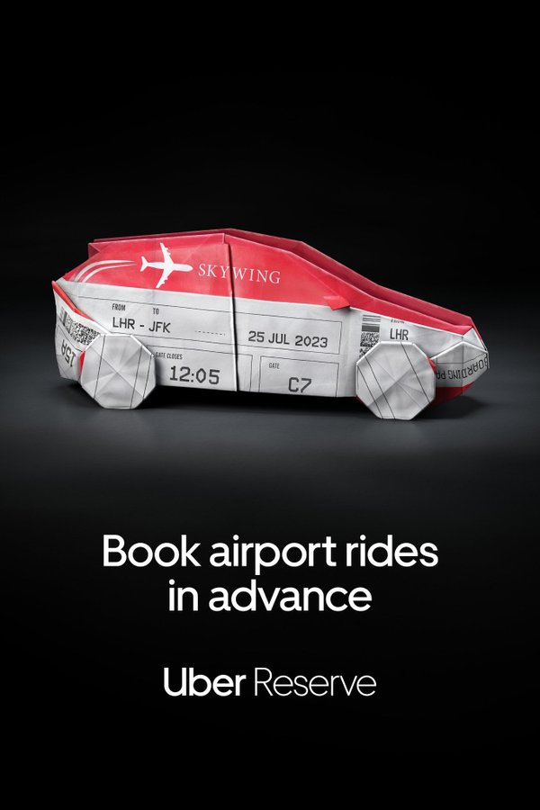 Креативная реклама «UBER RESERVE», выполненная в виде оригами из билетов.
