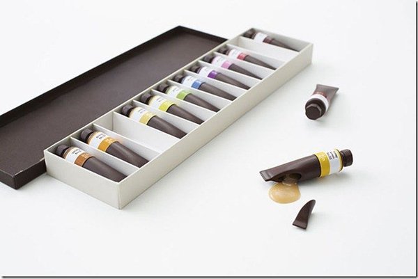 Фигурный шоколад Pen Шоколад от японской дизайн-группы Nendo в виде тюбиков с краской.
