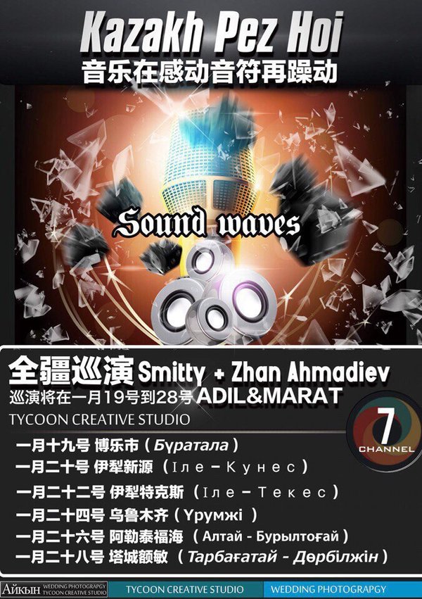 ЖАН АХМАДИЕВ пен Smitty қаңтар айында ҚХР-на «Қазақпыз ғой» атты концерттік турмен бармақ. Қазақша: 19.01.2016 — Бүратала 20.01.2016 — Іле — Кунес 22.01.2016 — Іле — Текес 24.01.2016 — Үрумжі (2 концерт) 26.01.2016 — Алтай — Бурылтоғай 28.01.2016 — Тарбағатай — Дөрбілжін Chinese: 博尔塔拉 伊利新源 伊利特克斯 乌鲁木齐 阿勒泰福海 塔城额敏