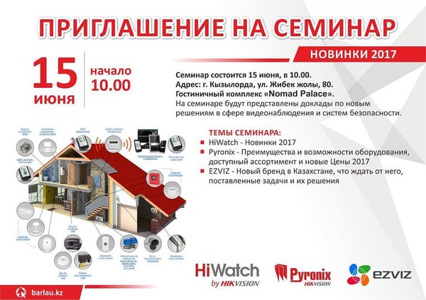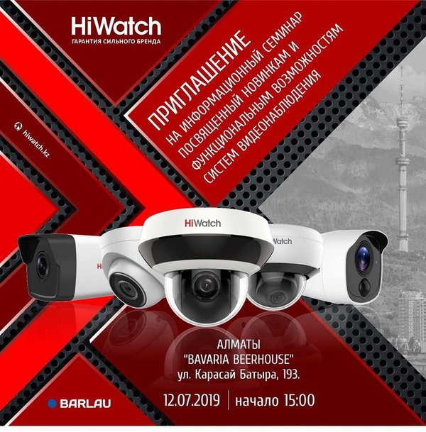 Уважаемые коллеги!!! . Компания Barlau приглашает Вас стать участником нашего семинара в #Алматы. Семинар посвящается: Новинкам HiWatch 2019 года. Новым возможностям систем видеонаблюдения HiWatch. А также будет много другой полезной информации. Семинар пройдёт по адресу г.Алматы, ул.Карасай Батыра 193, Паб «Bavaria Beer House» pub.bavaria Дата проведения 12.07.2019 г. Начало 15:00. С нетерпением ждём встречи с Вами.