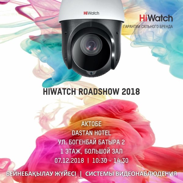 Заключительный семинар 2018 года, HiWatch Roadshow 2018 пройдет в городе Актобе, 7 Декабря, место проведения Dastan Hotel, ул. Богенбай Батыра 2, 1 этаж Большой зал. Ждем Вас с нетерпением, Вы узнаете самые последние новости HiWatch а также можете выиграть ценные призы.
