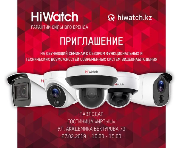 Приглашаем всех партнеров и друзей в городе Павлодар посетить технический семинар HiWatch. Вы узнаете много нового о HiWatch а так же научитесь на все 100% использовать доступный функционал. Ждём вас 27.02.2019 по адресу город Павлодар, ул. Академика Бектурова 79, гостиница Иртыш, начало в 10.00