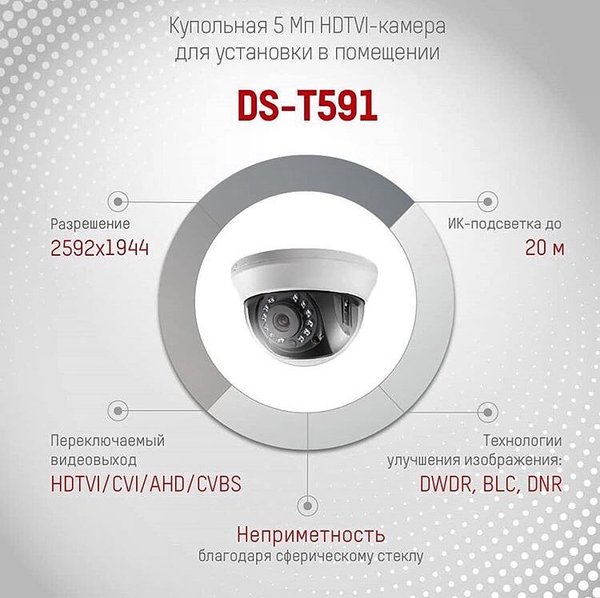 Представляем Вам купольную 5 МР HD-TVI-камеру, DS-T591.
