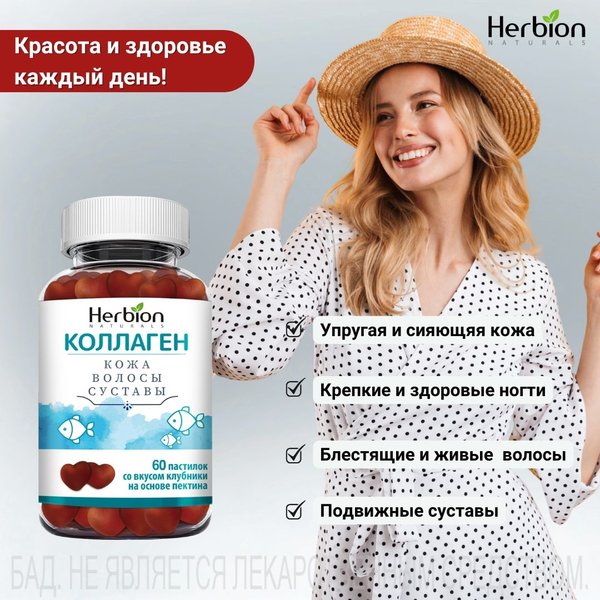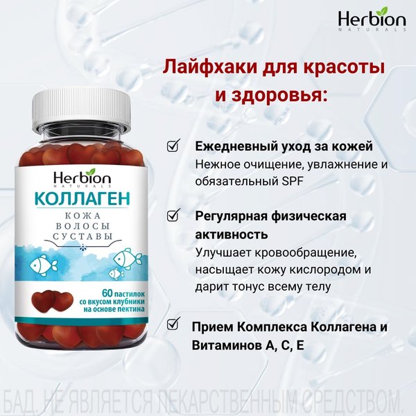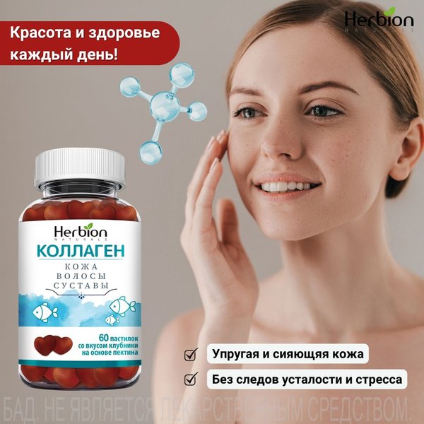 суставы Помочь изнутри могут жевательные пастилки КОЛЛАГЕН от Herbion: Коллаген + витамины A, C, E Яблочный пектин, вкус клубники Замедляют процессы старения Улучшают состояние кожи, волос и ногтей Повышают подвижность суставов Немного внутреннего ухода — и зима работает на твою красоту.