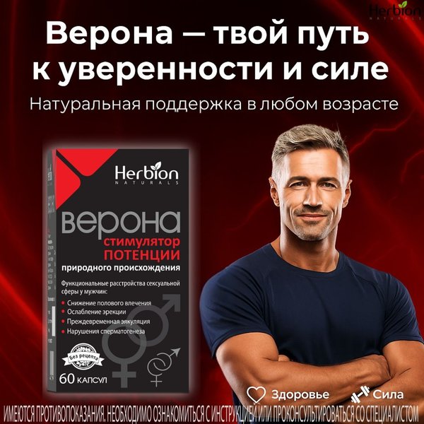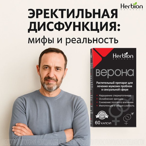 . Поэтому при стойких нарушениях важно обсудить ситуацию с врачом. Миф 3. «Ничего не поможет» Современный подход включает изменение образа жизни, лечение фоновых заболеваний и поддержку сексуального здоровья. В комплексной программе может использоваться натуральный растительный препарат ВЕРОНА. Экстракты 4 лекарственных растений в составе помогают: усиливать либидо улучшать потенцию, качество секса и сперматогенеза повышать иммунитет и выносливость Забота о мужском здоровье — это зрелость и ответственность, а не повод для стеснения.