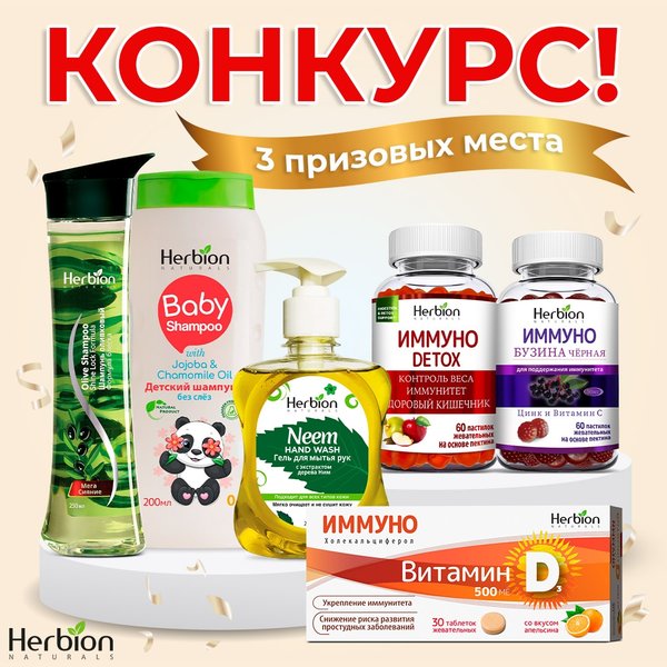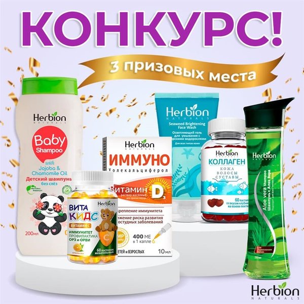 Новогодний розыгрыш для подписчиков! Разыграваем 3 наборов для мамы и малыша: Коллаген, Шампунь с Алоэ вера, Осветляющий гель с Морскими Водорослями Жевательные таблетки Иммуно Витамин Д3, Витакидс Витамин С Апельсин, Детский шампунь без слез Условия просты: ПОДПИСКА на профиль @herbionkazakhstan like под этим постом и под 5 любыми другими в нашем профиле ОТМЕТКА друга через @. Результаты будут объявлены 30 декабря 2025 ВАЖНО: В розыгрыше могут принять участие жители РҚ старше 18 лет. На момент розыгрыша Ваш профиль долж… — Читать дальше