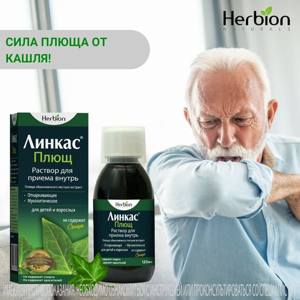 Линкас Плющ справляется и с сухим, и с влажным кашлем. Независимо от причины недомогания, экстракт плюща работает как «двойное» средство: облегчает кашель и выводит мокроту.