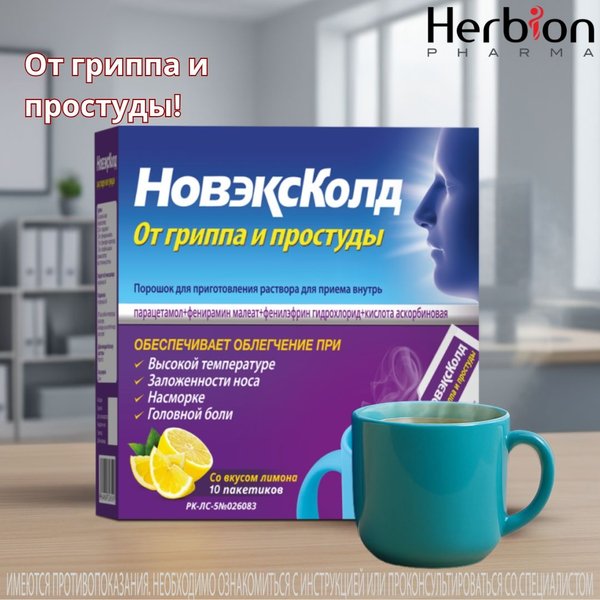 и куркумой — золотое средство от боли в горле. И, конечно, НОВЭКСКОЛД — горячий напиток от гриппа и простуды, который: Облегчает насморк, озноб, головную и мышечную боль Снижает температуру Содержит витамин С для быстрого восстановления Подходит взрослым и детям с 12 лет Пейте тепло, чувствуйте заботу и возвращайте себе лёгкость