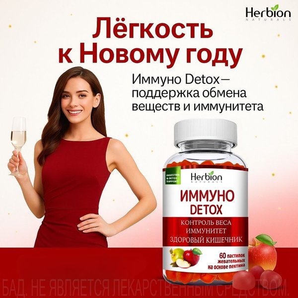 ать организм изнутри помогают жевательные витамины ИММУНО ДЕТОКС: Витамины группы B + яблочный уксус на основе натурального яблочного пектина Вкус спелого яблока Запускают обмен веществ и помогают мягко «сбросить лишнее» Поддерживают иммунитет и работу ЖКТ А теперь опрос: 1⃣ Следите ли вы за питанием перед праздниками? 2⃣ Что для вас важнее — минус килограммы или ощущение лёгкости?